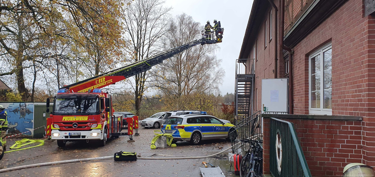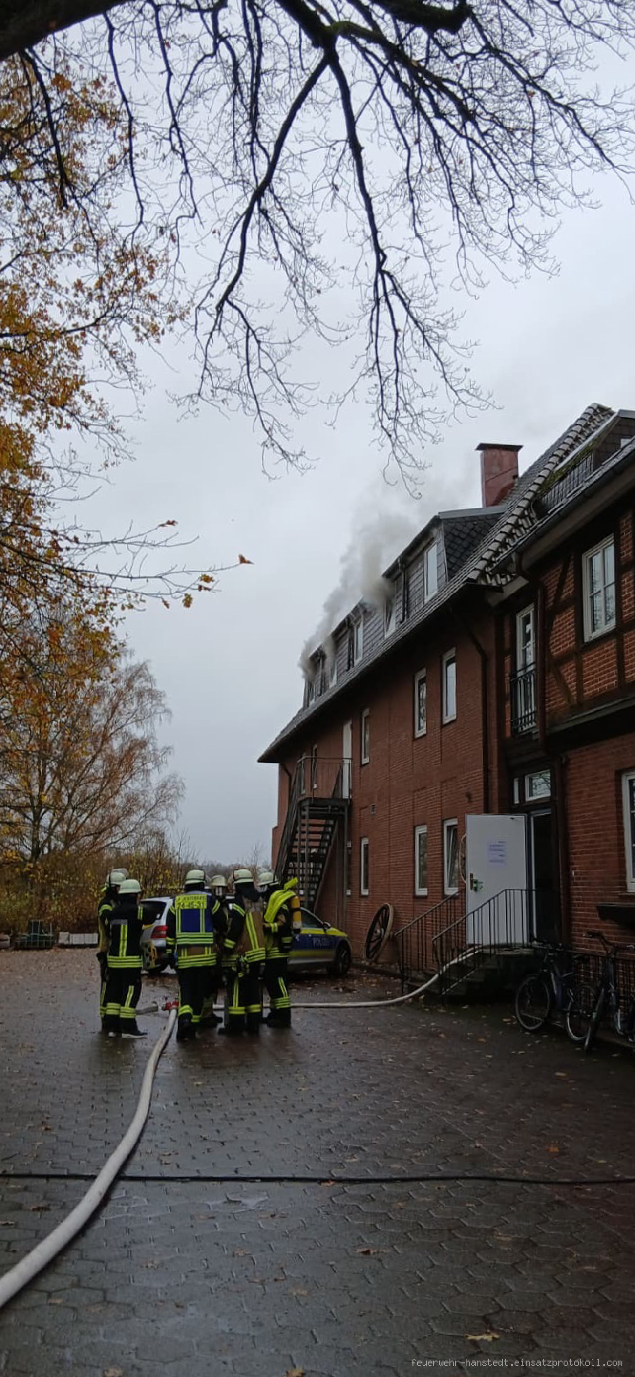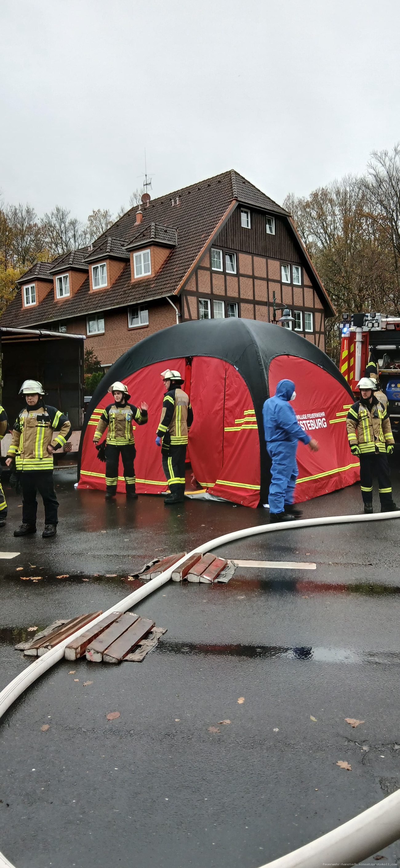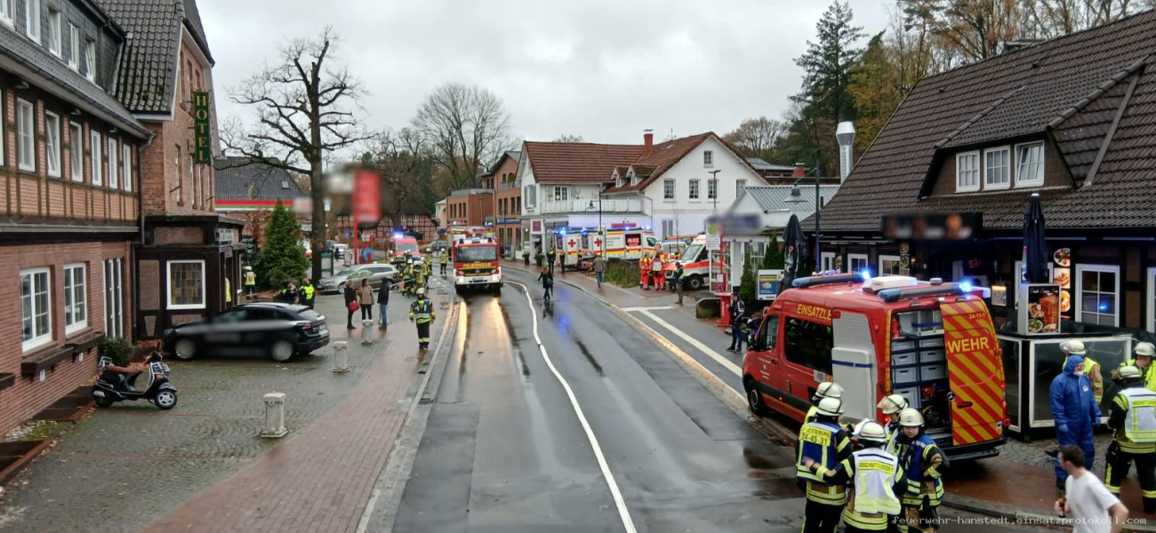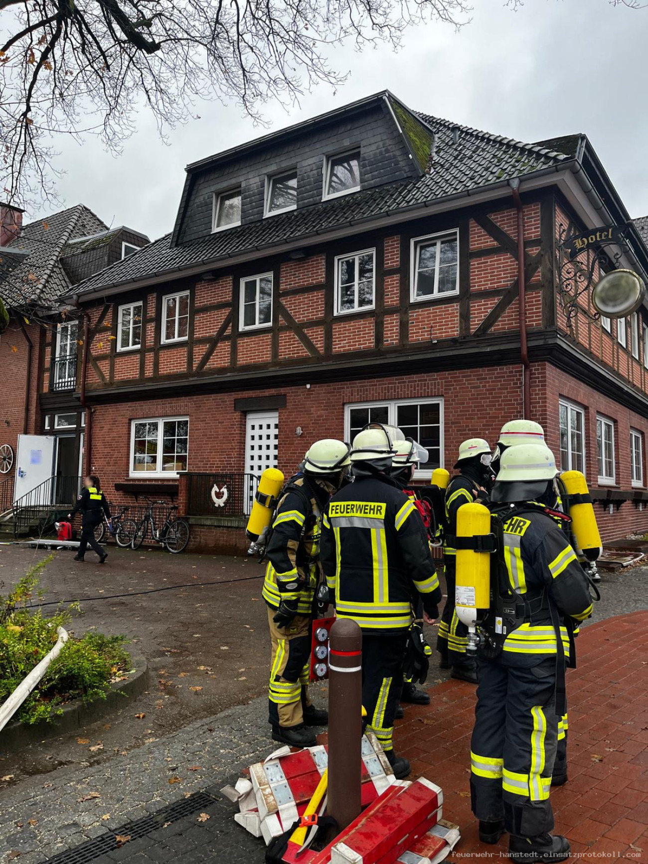 Am Freitagvormittag, den 14. November 2025, wurde die Freiwillige Feuerwehr Jesteburg um 11:13 Uhr zu einem Feuer in der Jesteburger Hauptstraße alarmiert. Bereits beim Eintreffen der ersten Einsatzkräfte bestätigte sich die Meldung: Aus Fenstern im zweiten Obergeschoss des Hotel Niedersachsen�, das aktuell als Flüchtlingsunterkunft des Landkreises Harburg genutzt wird, drang dichter Rauch.Passanten und Betreuer berichteten, dass sich noch Personen im Gebäude befinden. Sofort leitete der Einsatzleiter die Menschenrettung ein. Nach der Erhöhung auf das Alarmstichwort F3Y wurden zusätzlich die Tanklöschfahrzeuge der Feuerwehren Hanstedt und Klecken alarmiert, um weitere Atemschutztrupps und Löschwasserreserven sicherzustellen.Ein Trupp der Feuerwehr Jesteburg drang unter Atemschutz über den linken Seiteneingang bis ins zweite Obergeschoss vor. Parallel wurde eine zweite Erkundung im Innenhof durchgeführt, wo ebenfalls starke Rauchentwicklung festgestellt wurde. Die Drehleiter der Feuerwehr Buchholz ging auf der Vorderseite in Stellung und rettete eine Person aus dem verrauchten Bereich.Eine weitere Person konnte aus dem Innenhof gerettet und dem Rettungsdienst übergeben werden. Insgesamt wurden 16 Personen aus dem Gebäude evakuiert, eine Person wurde mit Verletzungen ins Krankenhaus gebracht.Das Feuer im zweiten Obergeschoss konnte durch mehrere Atemschutztrupps schnell lokalisiert und gelöscht werden. Anschließend erfolgten umfangreiche Nachlöscharbeiten und eine Kontrolle aller Wohnungen. Mit Hilfe eines Druckbelüfters wurde das Gebäude rauchfrei gemacht.Neben der Feuerwehr Jesteburg waren die Feuerwehren Lüllau, Bendestorf, Buchholz, Hanstedt und Klecken im Einsatz. Insgesamt waren über 100 Einsatzkräfte vor Ort. Der Rettungsdienst war mit zahlreichen Fahrzeugen und Führungspersonal eingebunden.Die Einsatzstelle wurde in mehrere Abschnitte gegliedert Brandbekämpfung links und rechts des Gebäudes, Atemschutzlogistik und Rettungsdienstkoordination um die komplexe Lage effizient abzuarbeiten. Die Koordination erfolgte über den Einsatzleitwagen der Samtgemeinde Jesteburg.Vor Ort machten sich unter anderem die Erste Kreisrätin des Landkreises Harburg, Frau Tiedt, sowie die Samtgemeindebürgermeisterin, Frau von Ascheraden, ein Bild der Lage. Sie übernahmen gemeinsam mit dem Ordnungsamt und dem Landkreis die Betreuung und Unterbringung der Bewohner.Nach rund zwei Stunden konnten die Einsatzkräfte abrücken. Das zweite Obergeschoss wurde durch die Polizei aufgrund der entstandenen Schäden versiegelt und ist derzeit unbewohnbar. Das Erd- und erste Obergeschoss können nach Freigabe wieder genutzt werden.Dank des schnellen und professionellen Einsatzes aller beteiligten Feuerwehren und Rettungskräfte konnte Schlimmeres verhindert werden. Die Freiwillige Feuerwehr Jesteburg bedankt sich bei allen Unterstützern und Partnerorganisationen für die hervorragende Zusammenarbeit
