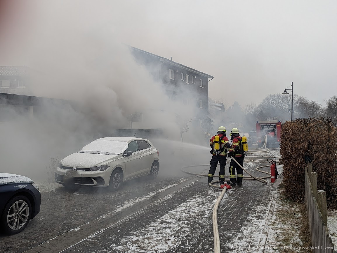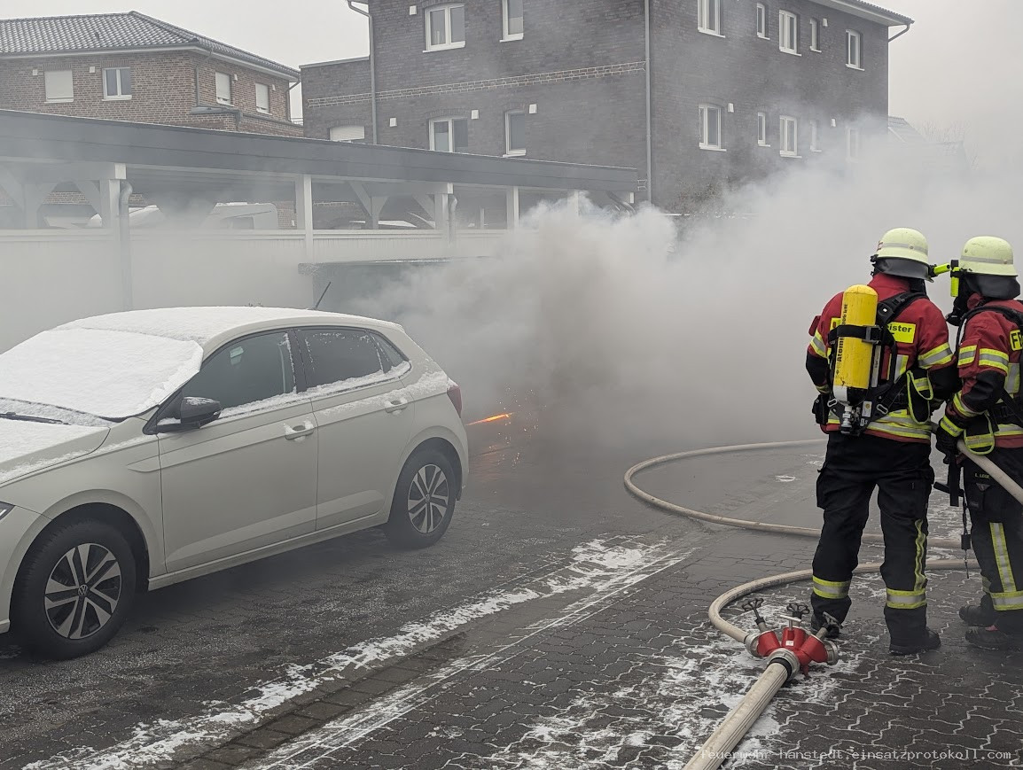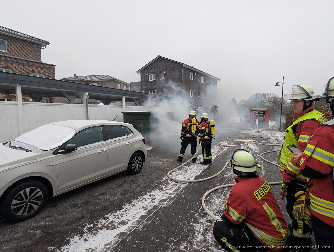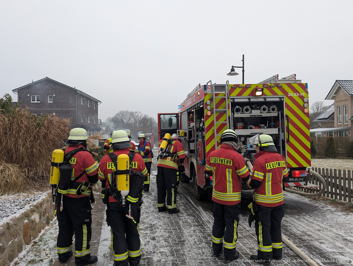 (jwu) Asendorf. Am heutigen Sonntagvormittag gegen 10:32 Uhr wurden die Freiwilligen Feuerwehren Asendorf, Hanstedt, Dierkshausen und im späteren Einsatzverlauf die Freiwillige Feuerwehr Marxen wegen einer Rauchentwicklung an einer örtlichen Trafostation alarmiert. Die Anlage, die für die Transformation von 20.000 Volt auf 400 Volt zuständig ist, geriet in Brand. Beim Eintreffen der ersten Kräfte drang Qualm aus der Umspannstation. Da die Sta-tion direkt an einen Carport angrenzt, errichtete die Feuerwehr unter der Leitung des Gemeindebrandmeister Sebastian Seier umgehend eine Riegelstellung als Vorsichts-maßnahme. Damit wurde ein potenzielles Übergreifen von Hitze oder Flammen auf das Nachbargrundstück effektiv verhindert. Nachdem der Netzbetreiber EWE NETZ die Station freigeschaltet hatte, gingen meh-rere Trupps unter Umluftunabhängigem Atemschutz vor, um das Innere der Station gezielt herunterzukühlen. Trotz des schnellen Eingreifens der 60 Einsatzkräfte brannte die technische Einrichtung der Station vollständig aus. Die eisigen Temperaturen führten dazu, dass das eingesetzte Löschwasser auf der Straße sofort gefror. Um die Si-cherheit an der Einsatzstelle nicht zu gefährden, rückte der Bauhof der Samtgemeinde Hanstedt an und sicherte die glatten Verkehrsflächen mit Streusalz ab. Ein besonderer Fokus der Einsatzkräfte lag auf der Sicherheit der Anwohner. Einsatzkräfte der Feuerwehr gingen die betroffenen Haushalte gezielt ab, um die Bürger persönlich über die Lage zu informieren. Dabei wurde explizit geprüft, ob Personen in den Haushalten auf medizinische Geräte angewiesen sind, die eine konstante Stromversorgung benötigen. Vom Stromausfall waren etwa 70 Haushalte und damit rund 250 Personen betroffen. Um eine Anlaufstelle im Warmen zu bieten, richteten die Gemeinde Asendorf und die Samtgemeinde Hanstedt im Dorfgemeinschaftshaus einen sogenannten Leuchtturm ein. Unter der Leitung von Ortsbürgermeister Rainer Mencke und Samtgemeindebürgermeister Olaf Muus wurden die Bürger dort über die Lage informiert und mit warmen Getränken versorgt. Die Reparaturarbeiten der EWE NETZ dauerten bis 18:00 Uhr an. Um die Zeit bis zur vollständigen Instandsetzung zu überbrücken, stellte die EWE NETZ die Versorgung der betroffenen Haushalte über eine provisorische Stromversorgung sicher. Die Ursa-che für die Entstehung des Brandes ist bislang ungeklärt.